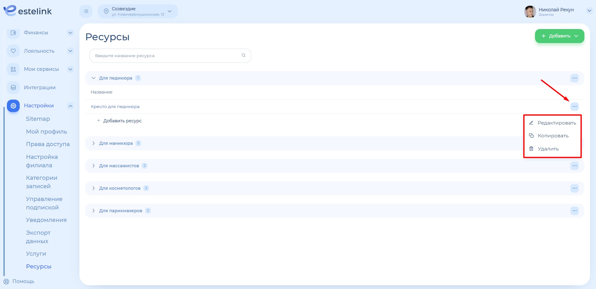 Чтобы удалить или редактировать ресурс, нажмите на три точки в каталоге напротив названия ресурса, а затем выберите «Удалить» или «Редактировать». Также вы можете копировать ресурс: откроется новая карточка с такими же данными.