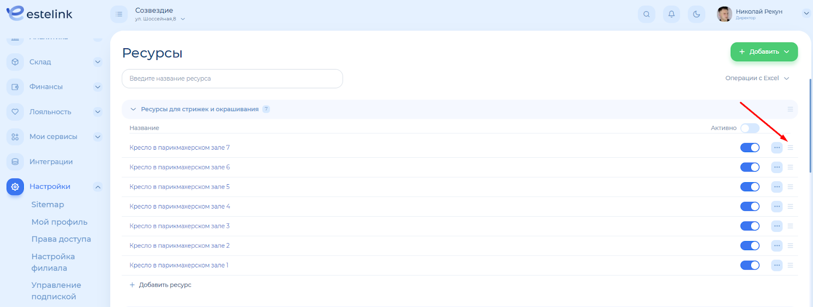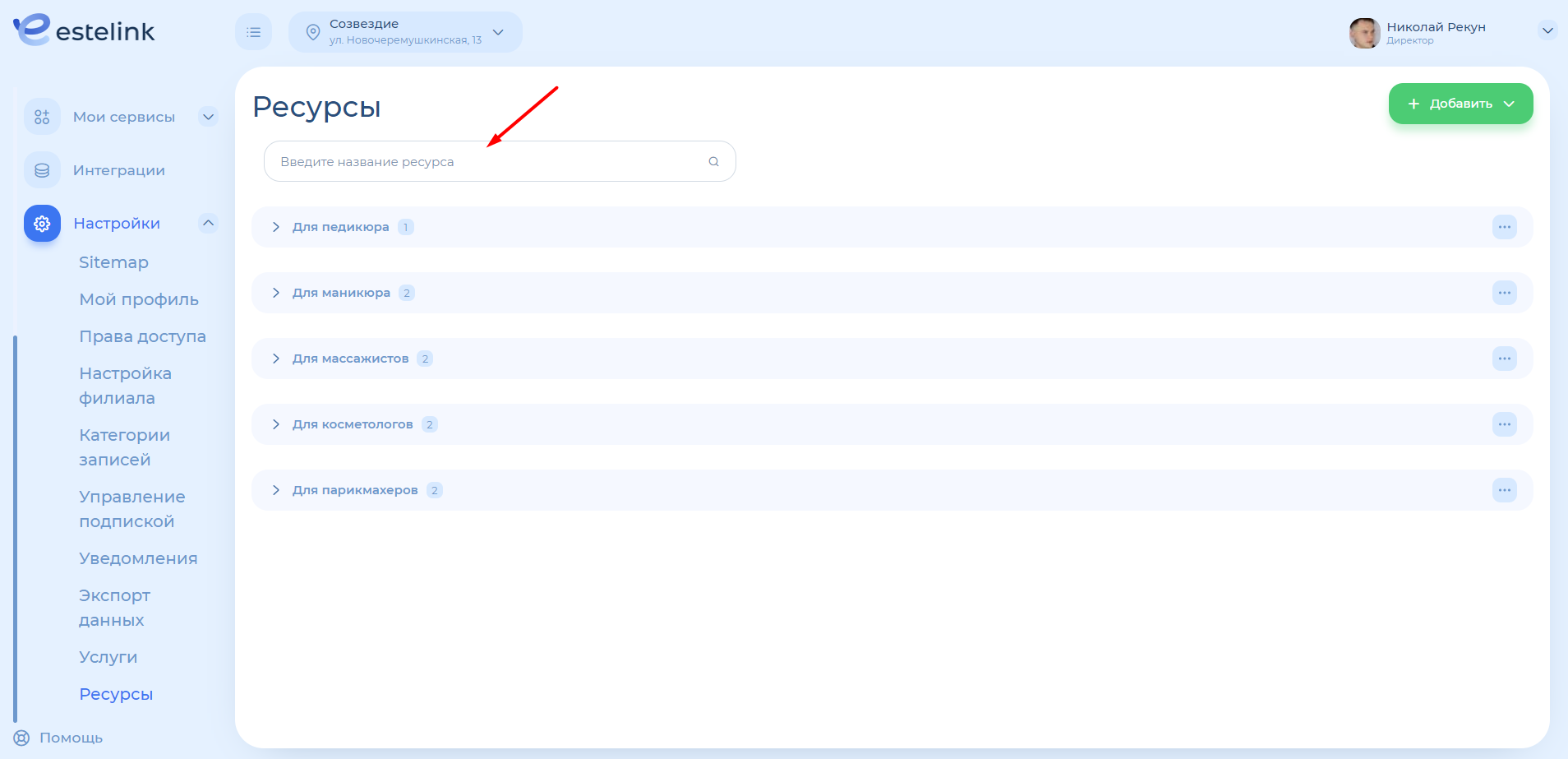 Ресурс – это помещение или оборудование, необходимое для оказания услуги. Например, стол для маникюра, массажный кабинет, парикмахерское кресло и пр.