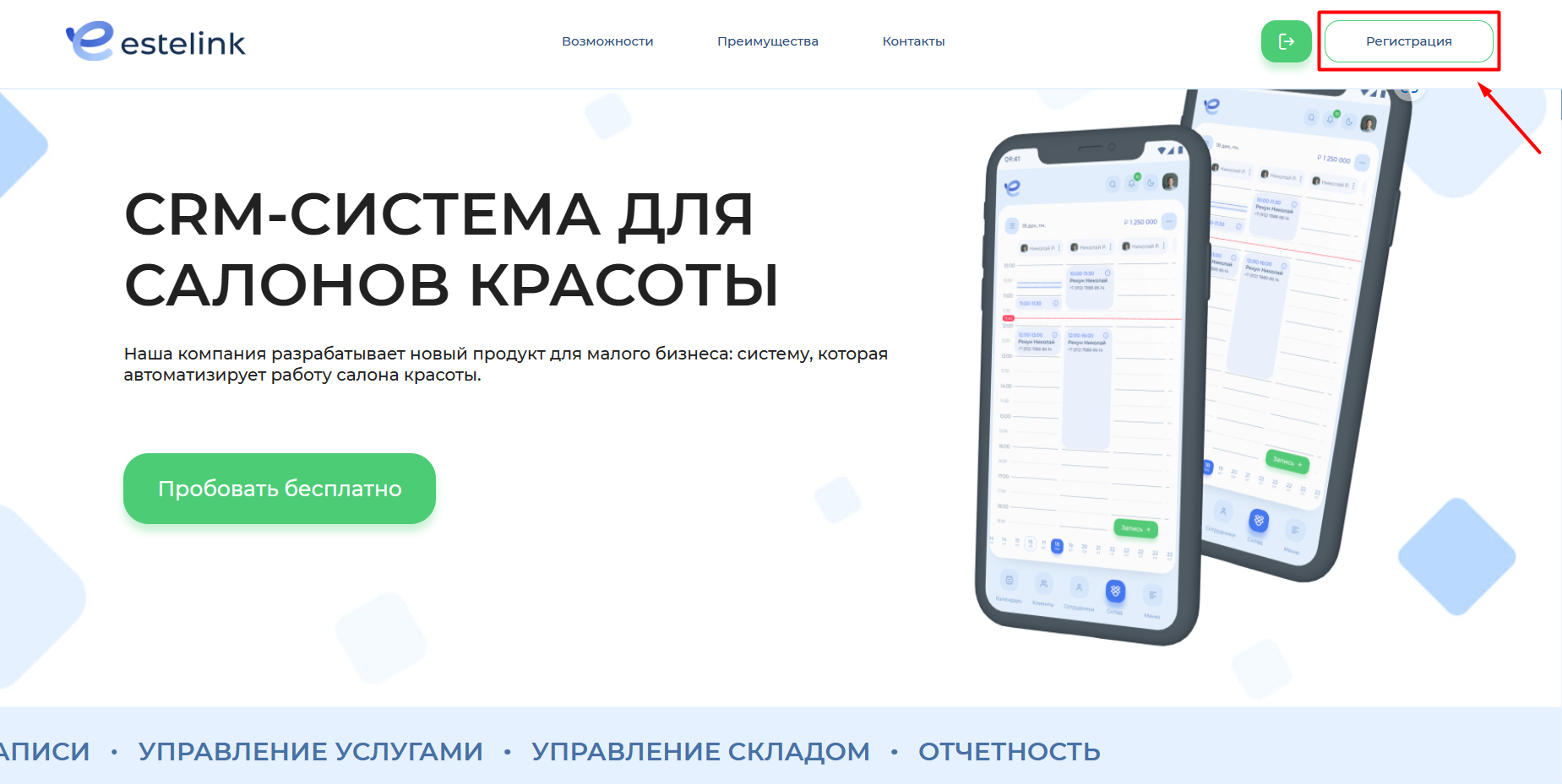 Чтобы начать работать в Estelink, перейдите по ссылке в письме-приглашении. Или зайдите на страницу Estelink и нажмите на «Регистрация».