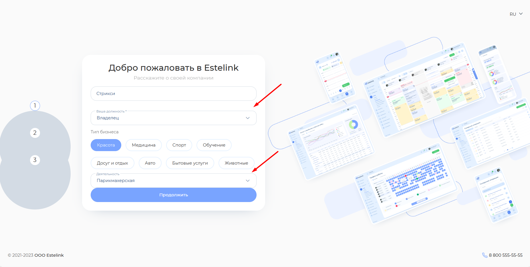 Заполните название компании. В поле «Ваша должность» выберите подходящую должность в раскрывающемся списке.