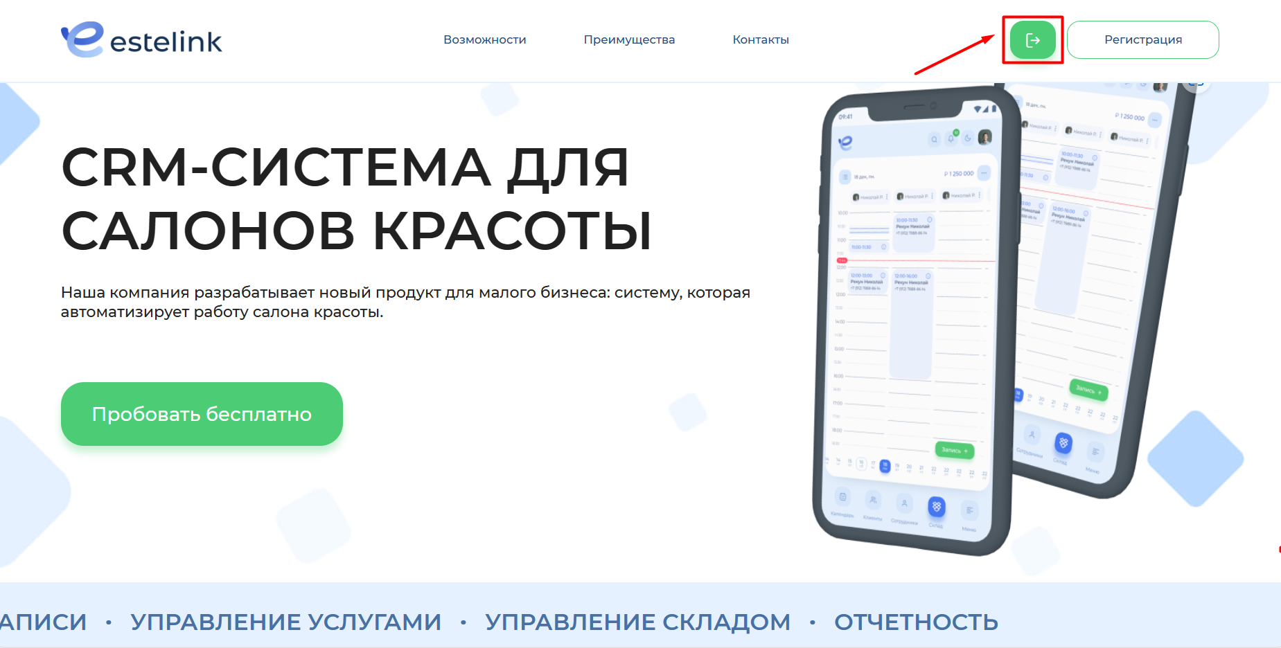 Чтобы войти в программу, перейдите по ссылке Estelink (estlink.space). Или зайдите на страницу Estelink и нажмите на значок входа.