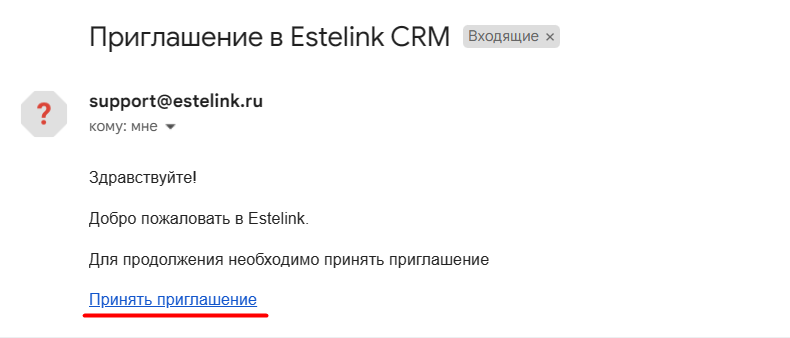 Чтобы начать работать в Estelink, вам нужно получить приглашение от компании. Приглашение приходит на электронную почту – откройте его и перейдите по ссылке для регистрации.
