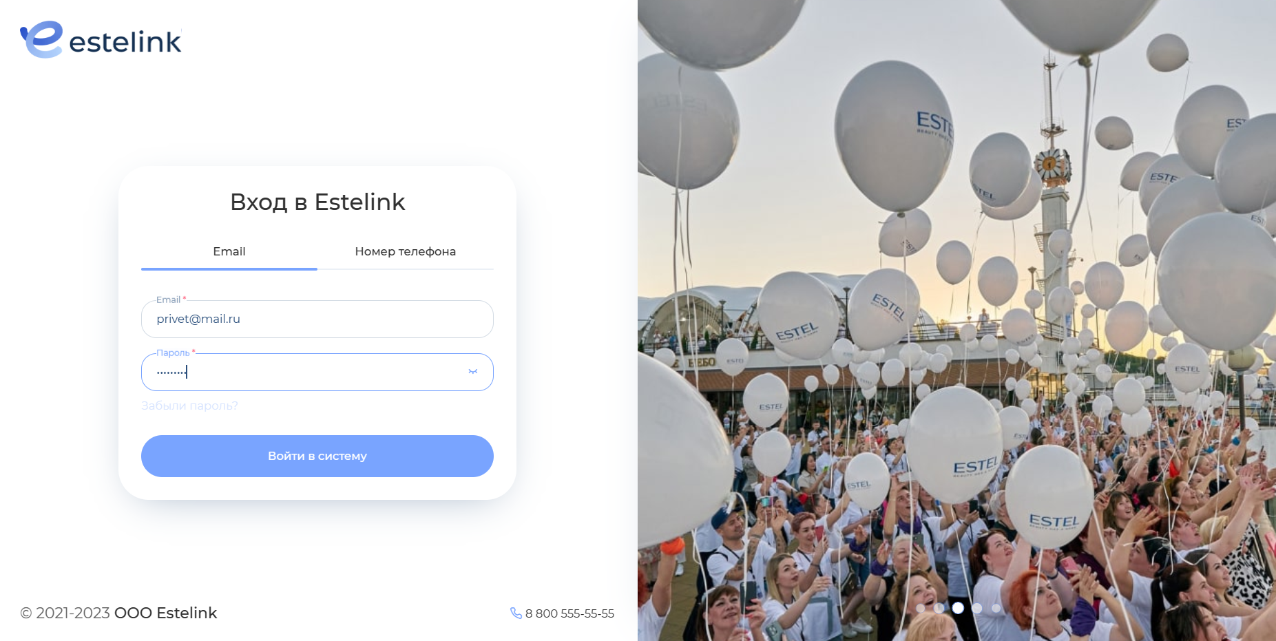 Откроется форма авторизации. Введите электронную почту и пароль или номер телефона и пароль, указанные при регистрации. Затем нажмите «Войти в систему».
