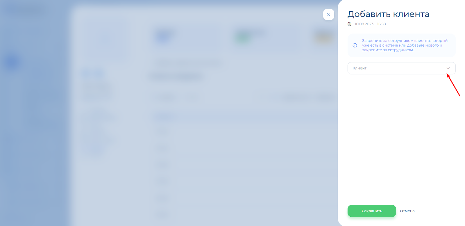 Привлеченный клиент – это личный клиент, которого специалист нашел сам. Нажмите на «Добавить привлеченного клиента», чтобы привязать клиента к сотруднику.